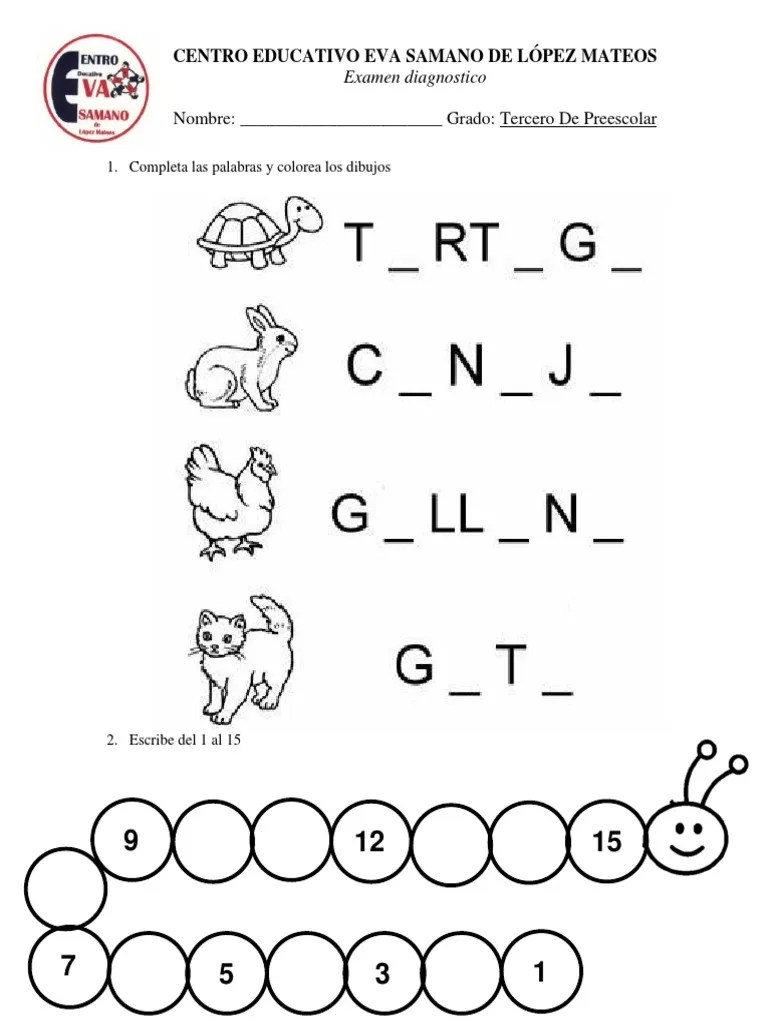 Descargue como pdf, txt o lea en línea desde scribd. Diagnostico para tercero de preescolar. Examen para preescolar pdf, evaluación diagnostica preescolar formato, exámenes para preescolar listos . Colorea el animal que se forma al armar el rompecabezas. Porque en los archivos asi viene, igual .